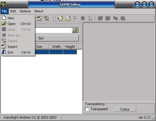 - Vytvořte nový soubor (File > New) a vkládejte upravené gumpy podle jejich čísel