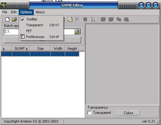 ToolBar, Transparent, FET, Preferences
