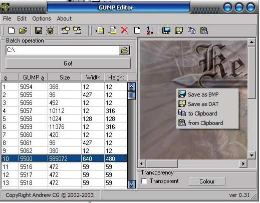 GUMP Editor je momentálně nejlepší program pro úpravu gumpů (grafická statická data). Na rozdíl od Paradise Gump Patcheru zvládá rychlé vykreslování obrázků a může pracovat jen s určitou částí grafických souborů k vytvoření patche.
